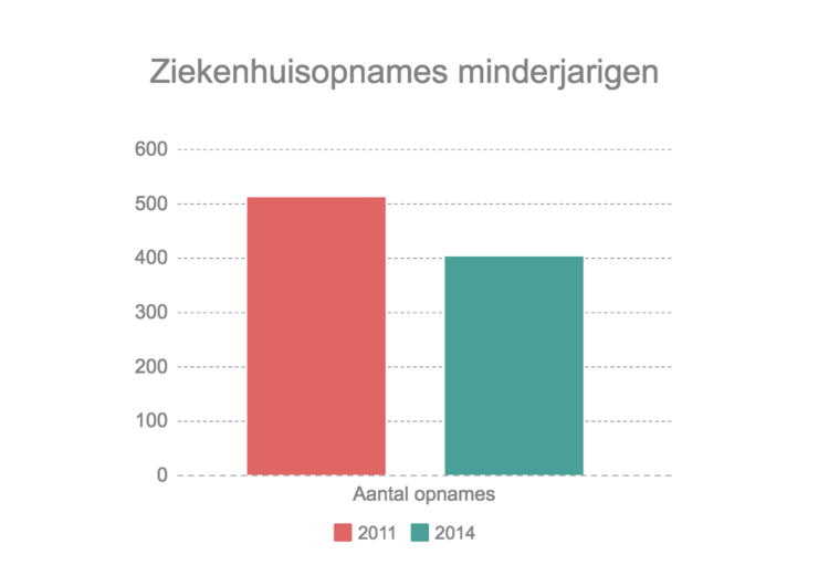 Het aantal minderjarigen dat in het ziekenhuis opgenomen wordt wegens een alcoholintoxicatie is in de periode 2011-2014 gedaald van 511 in 2011 tot 402 in 2014. Dat blijkt uit het antwoord van minister van Volksgezondheid Maggie De Block op een schriftelijke vraag van Gautier Calomne (MR). De minister baseert zich hierbij op de Minimale Ziekenhuisgegevens (MZG).